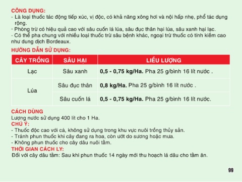 0,5 - 0,75 kg/Ha. 0,8 kg/Ha. 0,5 - 0,75 kg/Ha. CÁCH DÙNG 99 99