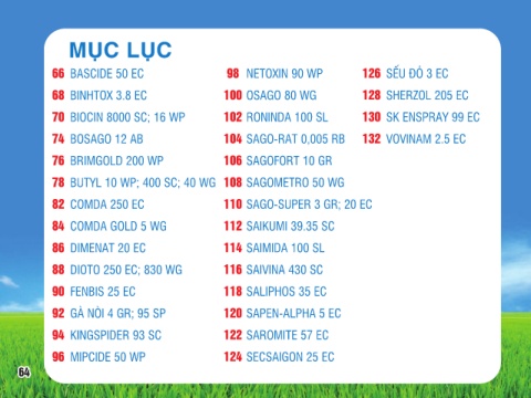66 BASCIDE 50 EC 98 NETOXIN 90 WP 126 SẾU ĐỎ 3 EC