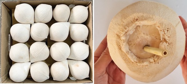 Bước 3: Dùng ống hút khứa nhẹ qua mắt mềm nhất rồi thưởng thức nước dừa.