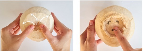 Mẹo uống dừa chỉ bằng tay Những người yêu thích dừa luôn gặp một số khó khăn khi mở lớp vỏ cứng của quả dừa. Thông thường họ dùng dao để bẻ nhưng Mary đã chia sẻ mẹo về cách mở dừa bằng tay. "Đầu tiên, bạn phải biết cấu trúc bên trong của một quả dừa." Trên gáo dừa luôn có 3 mắt. Một trong số chúng được đặt theo cách như vậy để tạo điều kiện trao đổi nước và khoáng chất diễn ra trong dừa. Nó thực sự mềm và dễ gãy. Sau khi biết điều này, sẽ có thể tự tay mở một quả dừa ”. Bước 1: Dùng tay cạo bỏ lớp vỏ xơ trên đầu quả dừa để lộ ra 3 mắt trên vỏ.